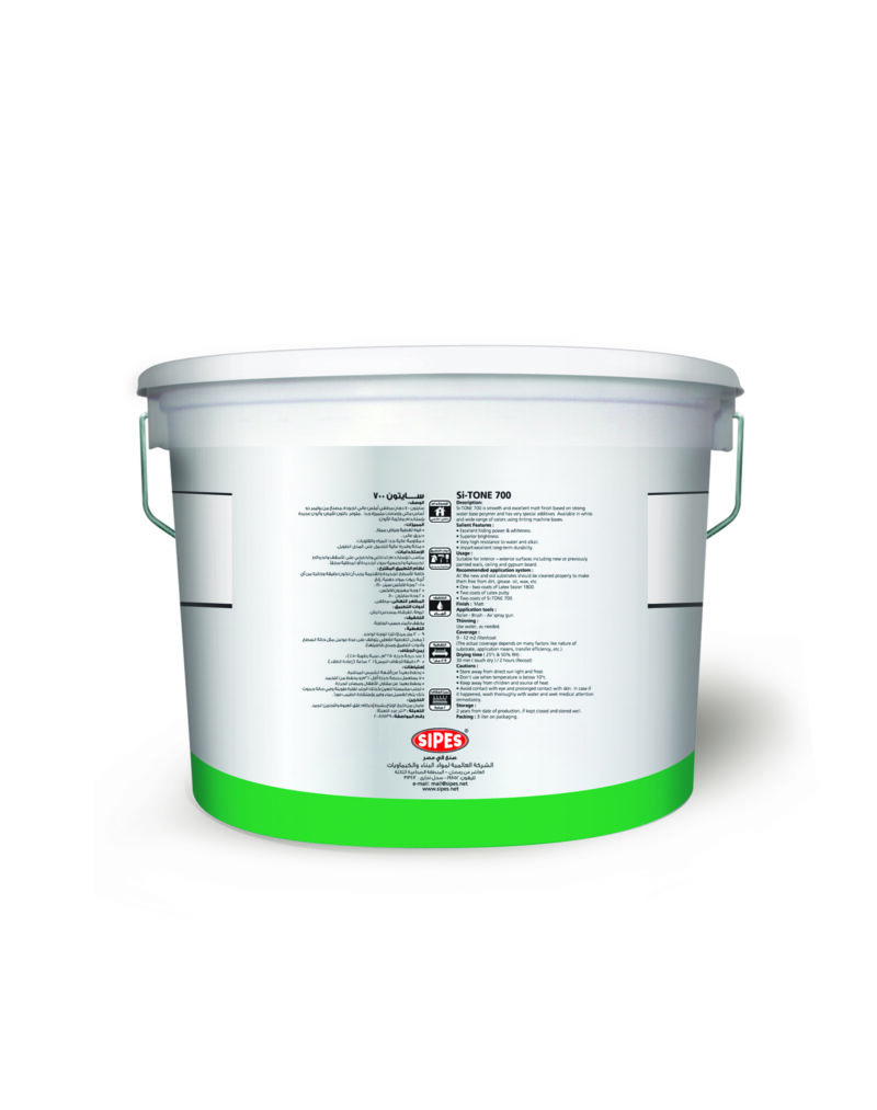 Si-Tone 700 is a high-quality matt water based paint, made of Acrylate copolymer and excellent additives. Available in white color and in a range of attractive colors that could be realized by using paint bases for coloring machines. Artistic characteristics of colors differ with selected colors.